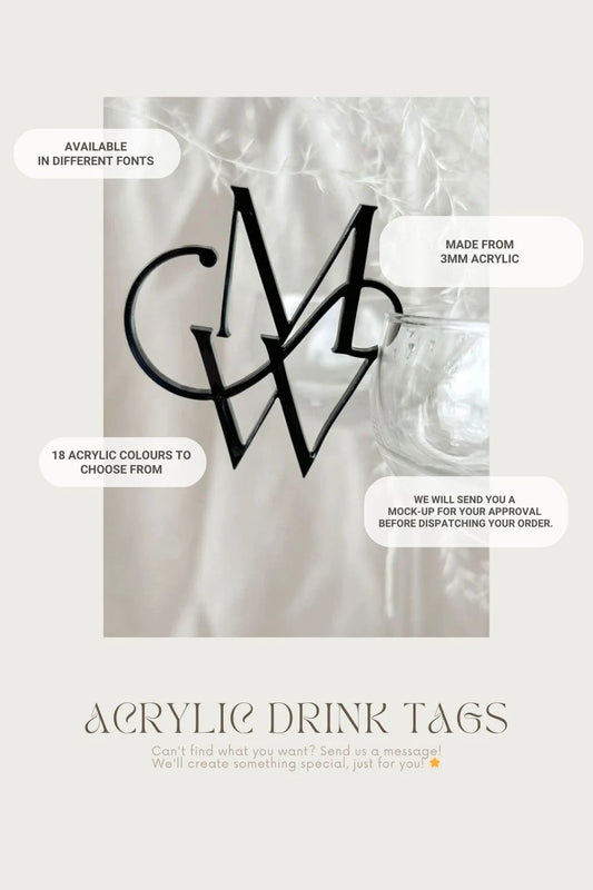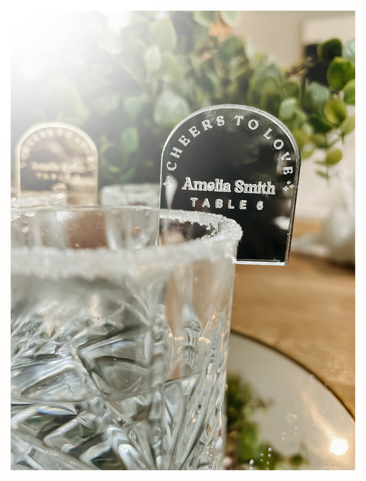 Glass Markers | Party Drinks Charms | Personalised Cocktail Charms | Engraved Mirror Name Place | Wedding Wine Charms | Arch Acrylic charm